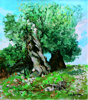 Δεκατέσσερεις γνωστοί και καταξιωμένοι ζωγράφοι, ο Απέργης, ο Γέρος, ο Ζουμπουλάκης, ο Κατσουλίδης, ο Κοκκινίδης, ο Μυταράς, ο Σάμιος, ο Σαρακατσιάνος, ο Σπεράντζας, ο Σταθόπουλος, ο Στάθης, ο Τσόκλης, ο Φασιανός, ο Χάρος και τρεις γλύπτες, ο Παναγιωτίδης, η Σαραντοπούλου και ο Τζαφόλιας, ανταποκρινόμενοι στο κάλεσμα της φύσης, δημιούργησαν έργα έχοντας ως πηγή έμπνευσης ένα δέντρο.