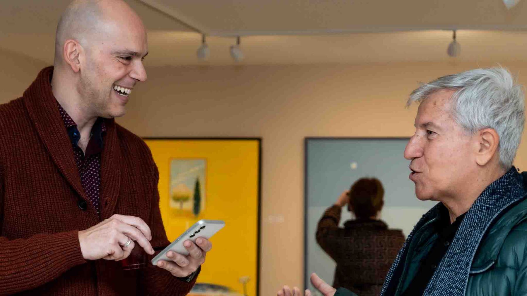 Σωτήρης Σόρογκας: Γεννήθηκε στην Αθήνα το 1936. Σπούδασε με κρατική Υποτροφία στην Ανωτάτη Σχολή Καλών Τεχνών (ΑΣΚΤ) με δασκάλους μεταξύ άλλων τον Γιάννη Μόραλη και τον Παντελή Πρεβελάκη. Είχε και έχει πλήθος εκθέσεων με χορηγία του Υπουργείου Πολιτισμού σε Ελλάδα, Ιαπωνία, Βέλγιο, Ιρλανδία, Βραζιλία, ΗΠΑ, Γαλλία, Ιταλία, Ελβετία κι αλλού. Ήταν καθηγητής στο Εθνικό Μετσόβειο Πολυτεχνείο στην Σχολή Αρχιτεκτόνων από το 1964 έως το 2003. ‘Εχει συγγράψει πλήθος θεωρητικών και κριτικών κειμένων για καίρια ζητήματα του εικαστικού χώρου, αλλά και για θέματα ευρύτερου πνευματικού ενδιαφέροντος. Το 2004 έλαβε βραβείο καλλιτεχνικής συνεισφοράς από την Ακαδημία Αθηνών. Είναι συνιδρυτής της Εταιρείας Μελέτης Ελληνικού Πολιτισμού. Το 2018, ο Πρόεδρος της Δημοκρατίας Προκόπης Παυλόπουλος του απένειμε το παράσημο του ταξιάρχη του τάγματος της Τιμής.
