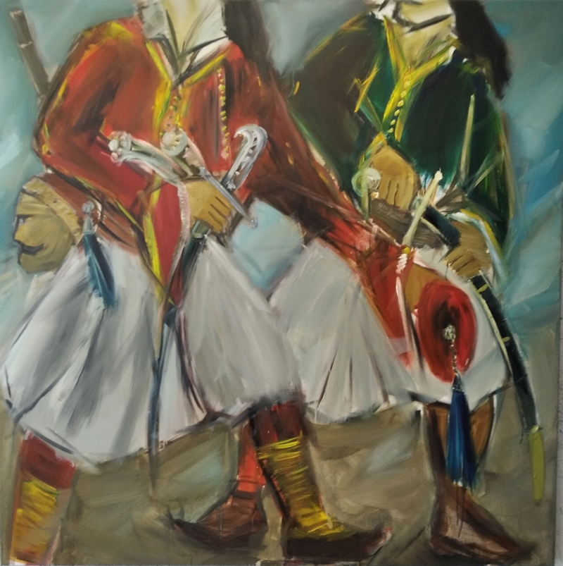 Στην ενότητα των έργων που αφορούν τα χρόνια της Επανάστασης τον απασχολεί ιδιαίτερα η απόδοση του ηρωικού αισθήματος και να αποτίσει έναν φόρο τιμής στους ήρωες των απελευθερωτικών αγώνων του έθνους. Οι φιγούρες των πρωταγωνιστών περιγράφονται μαχητικές και με τα αναγνωρίσιμα ενδυματολογικά στοιχεία, αλλά χωρίς τα ιδιαίτερα χαρακτηριστικά του προσώπου τους, μην θέλοντας ο καλλιτέχνης να προσδιορίσει συγκεκριμένα πρόσωπα αλλά να αναφερθεί γενικά στη θυσία των μαχόμενων Ελλήνων. Τολμά ακόμα και να αναπαραστήσει ακέφαλα σώματα αγωνιστών για να παραπέμψει εύλογα τόσο στην άυλη διάσταση της αυταπάρνησης και της πίστης, στη μεγάλη ιδέα «καλύτερα μιας ώρας ελεύθερη ζωή», όσο και στον ένοπλο αγώνα των Αρματολών.