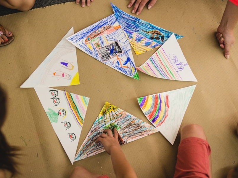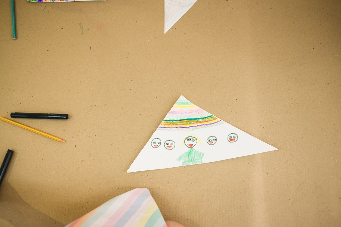 Lastly, the children will be encouraged to use their own creative imagination. They will be asked to paint triangles, thus learning that a white piece of paper is not an empty space. It is a painting space, even in its emptiness. It is an experience of fundamental importance, since it prevents the “fear of blank page”, teaching them how to use an empty space as a vehicle serving their creative needs!