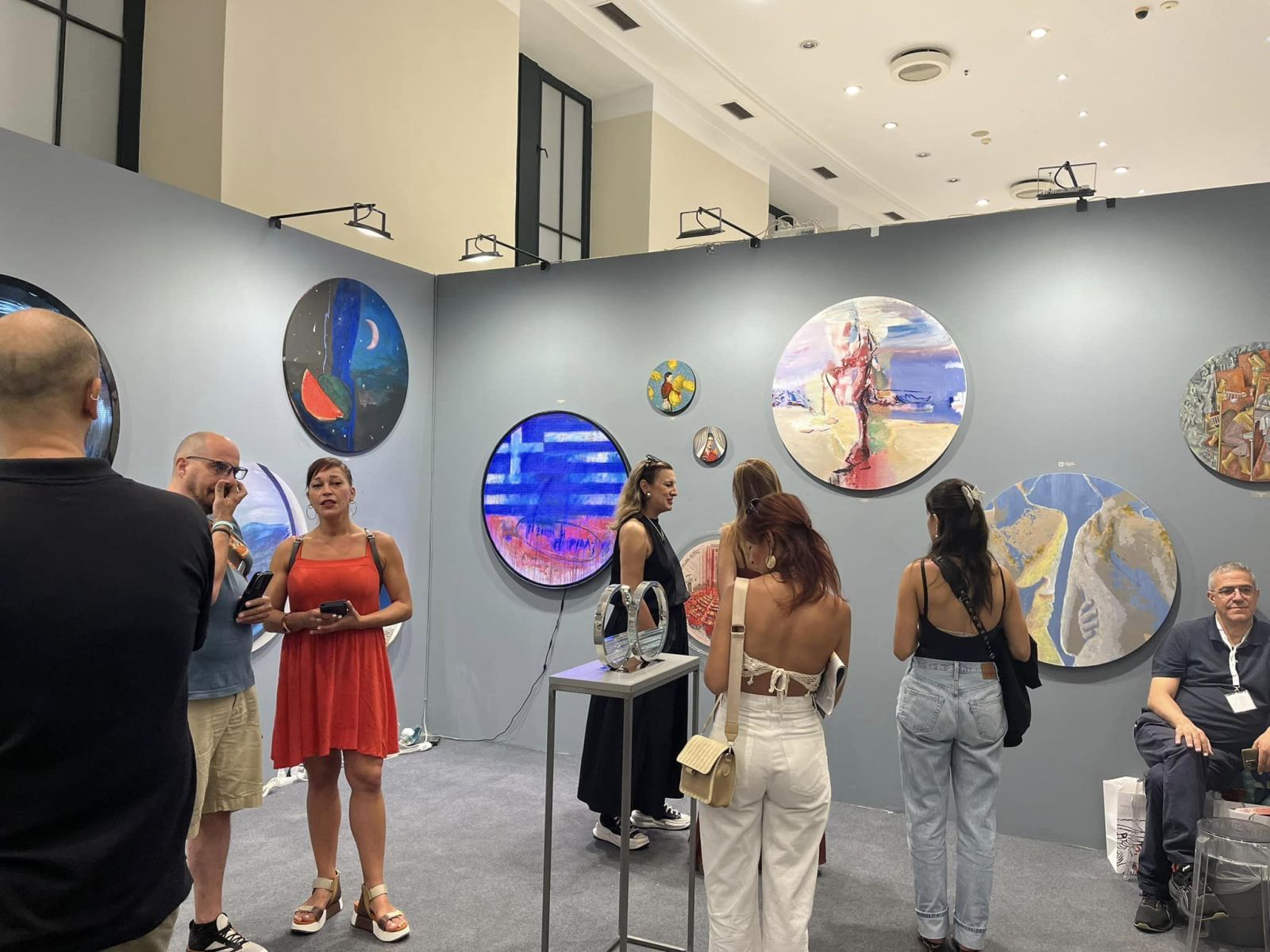 The Sianti gallery, continuing its original thematic exhibitions, has challenged this time, on the occasion of Athens’ largest annual art event, “Art Athina,” 21 artists to work on round surfaces. More specifically, the artists have crafted their compositions on round canvases of various sizes or have created prominent circular sculptures from glass, bronze, and metal. This form and shape were extremely popular during the Renaissance and Baroque periods. We are referring to the well-known “tondo,” derived from the word “rotondo,” meaning “circle.” It represents the perfect shape symbolizing the universe, the sun, the moon, and the planets, and it inspired painters such as Raphael, Michelangelo, and Bronzino.